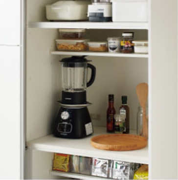 Hệ thống lưu trữ ba chiều được bố trí ở cả hai bên bếp để có thể lấy đồ ra vào hiệu quả tùy theo mục đích sử dụng. Hỗ trợ cho hoạt động nấu nướng của bạn.