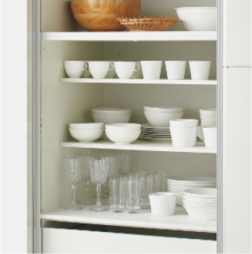 Có thể lưu trữ・sắp xếp các vật dụng tùy theo chiều cao mà không cần xếp chồng chúng trong hộp trượt.